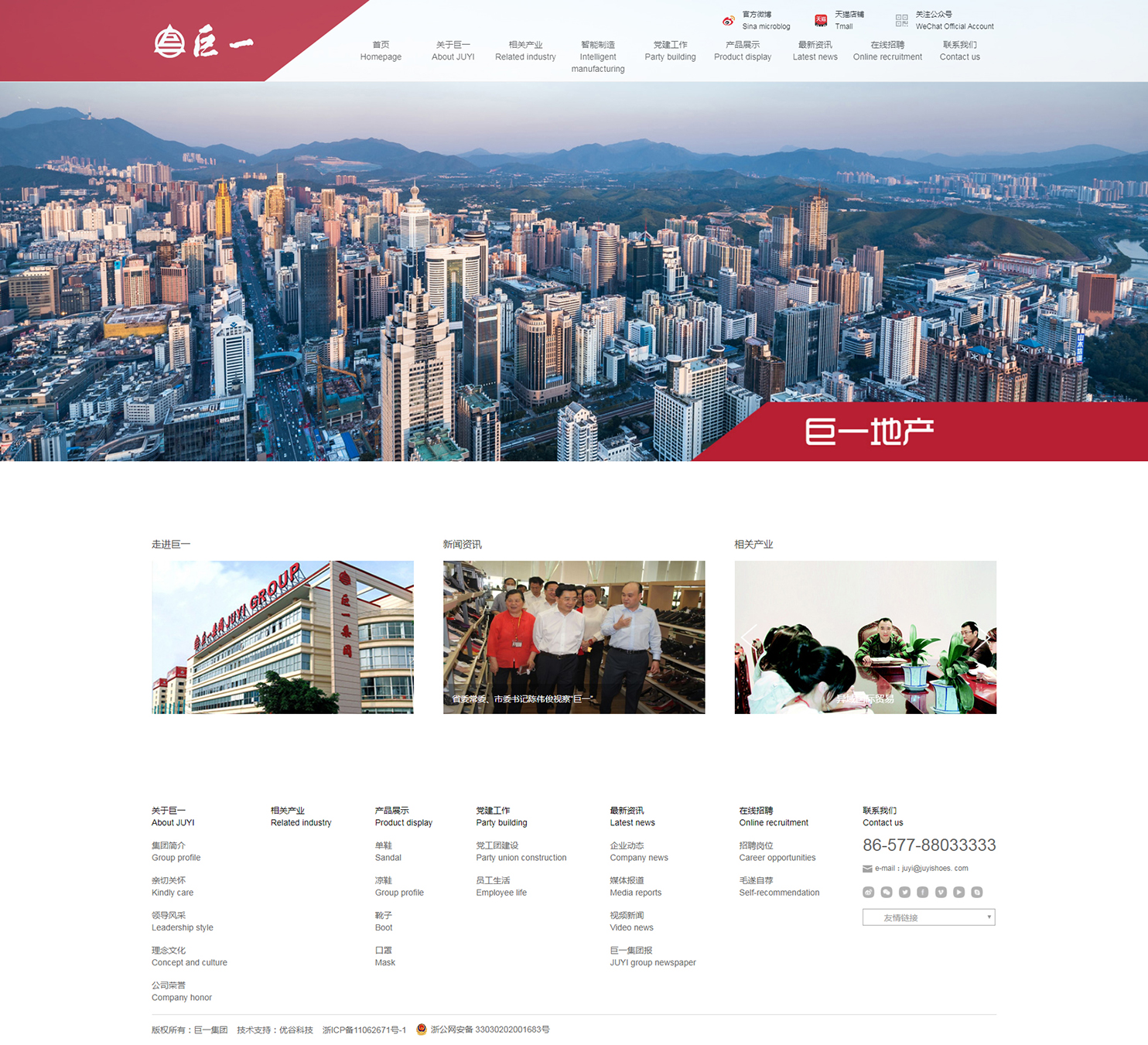 巨一集團始創于1988年,現已發展為集鞋類、口罩制造,醫療器械、國際貿易、房地產、商場、酒店等于一體的無區域企業集團。員工5000多名。企業先后獲得中國鞋類出口基地龍頭企業、國家高新技術企業、海關AEO高級認證企業、中國馳名商標、中國真皮鞋王、省AAA級“守合同重信用”企業、浙江名牌、浙江出口名牌、浙江省質量獎、溫州市領軍企業等榮譽稱號。黨和國家領導人習近平、張德江、賈慶林、羅干等先后蒞臨公司視察或親切接見公司領導。
