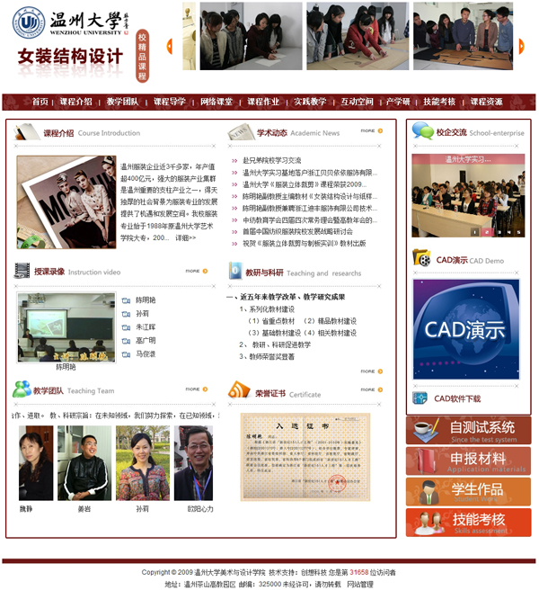我公司為溫州大學服裝學院,建立的女裝結構設計精品課程 經溫州市教育局評審被評為溫州市高等學校市級精品課程網站。這也是我公司開創了第二個市級精品課程網。同時也慶祝公司在精品課程網站制作方面更上一個新的臺階,同時希望以后能夠為高等院校服務,創立更好的網站。